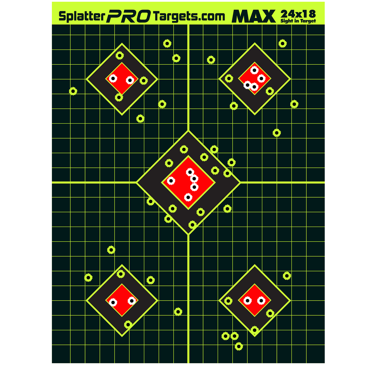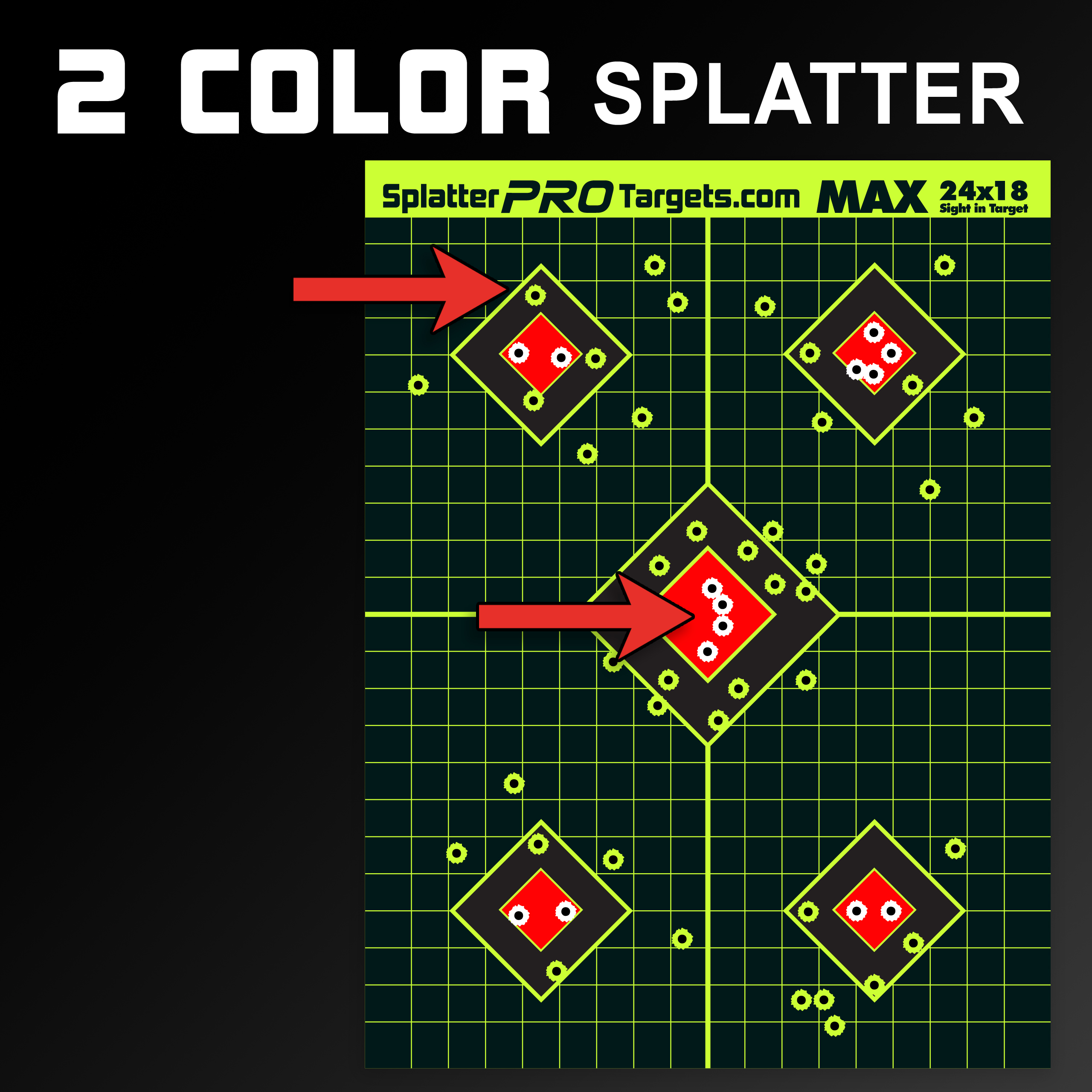 24×18 Splatter Targets. Shots Burst Bright Fluorescent Green Upon Impact. Instantly See Your Shots. Ultimate Contrast with a two color Splatter!